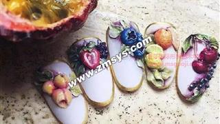 1、工笔手绘的技能技巧、五瓣梅花、叶子、紫荆花、樱花、豹纹、桃心、玫瑰花、蕾丝花边、蝴蝶结;双色紫荆花、菊花、草莓、葡萄、水草、鱼、羽毛、蝴蝶;工笔彩绘组合制作